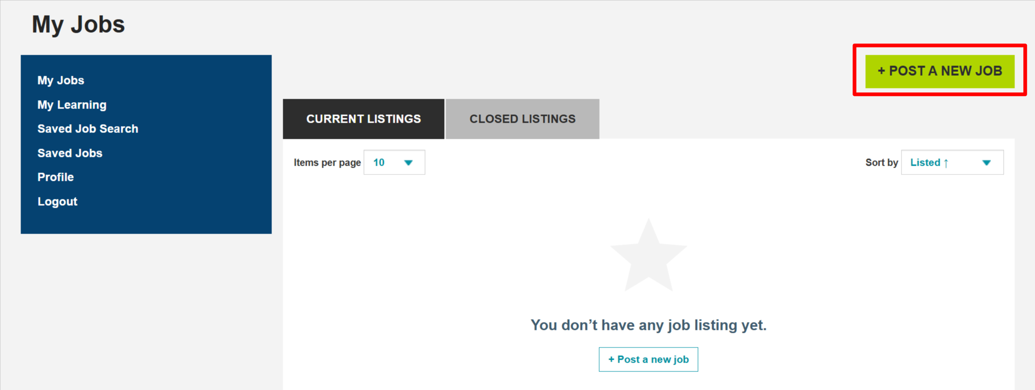 1. In the "My Jobs" dashboard, click on the "POST A JOB" button.