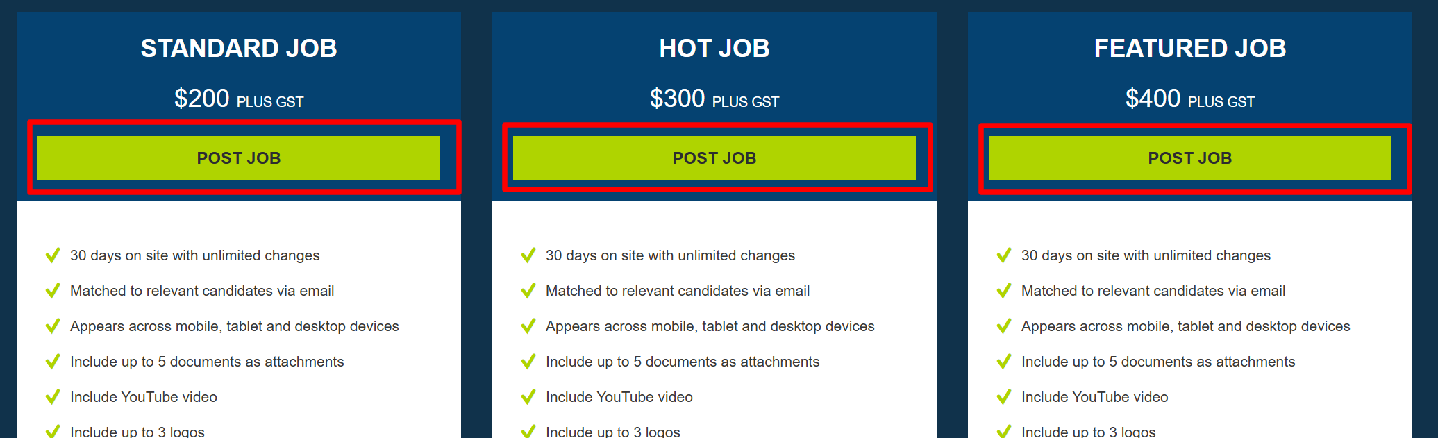 2. Select one of the job types: Standard Job, Hot Job, or Featured Job.